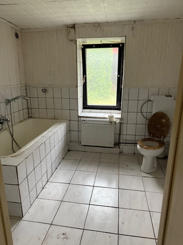 Die Doppelhaushälfte erstreckt sich über zwei Etagen und bietet insgesamt sieben Zimmer, die genügend Platz für Ihre Familie oder individuelle Gestaltungsideen bieten. Zwei Badezimmer runden das Raumangebot ab. Die sanierungsbedürftige Substanz bietet die Möglichkeit, das Haus ganz nach Ihren Vorstellungen herzurichten und in neuem Glanz erstrahlen zu lassen.