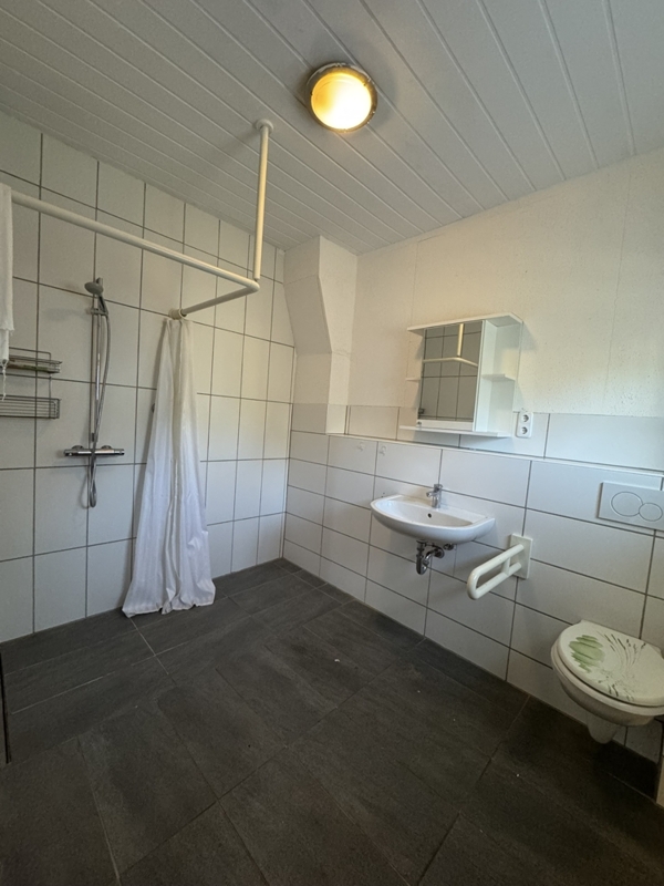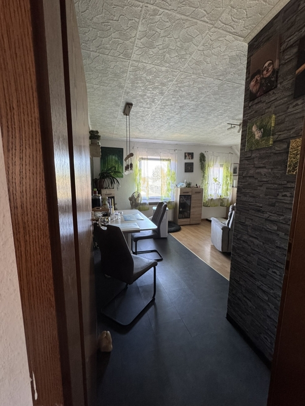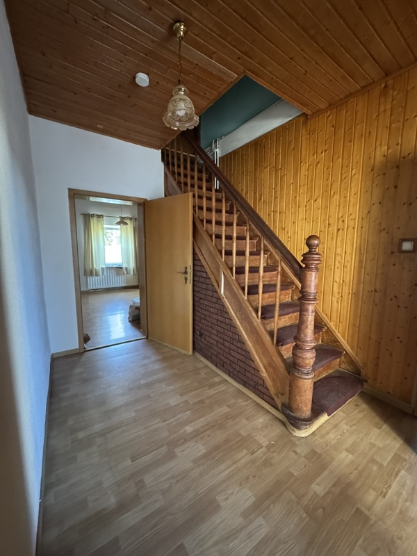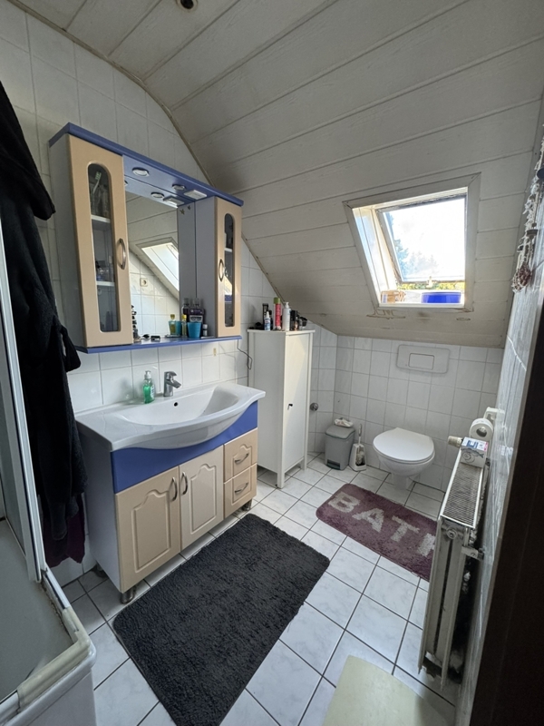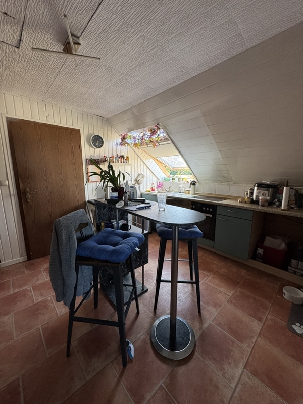 Die Etage im Dachgeschoss beginnt in der Wohnküche. Dann gibt es drei weitere Zimmer und ein Duschbad. Diese Etage wird von einem der Eigentümer derzeit bewohnt. Der nicht ausgebaute Dachboden ist über eine Einschubtreppe aus der Küche zu erreichen.