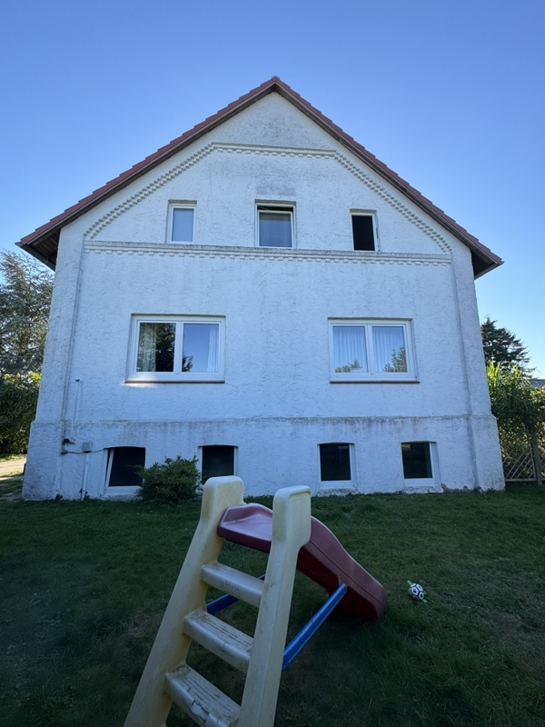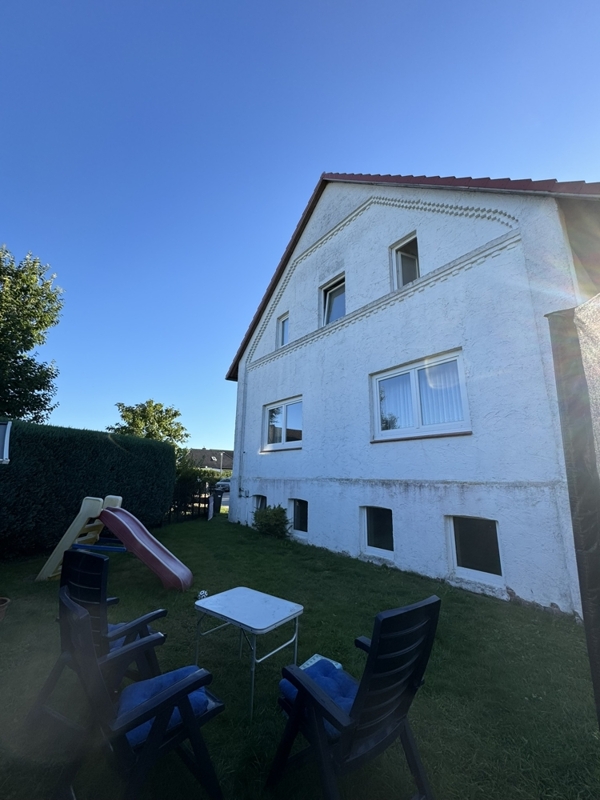 Die charmante, weiß-geputzte Altbau-Doppelhaushälfte aus dem Baujahr 1917 steht mit einem anderen Wohngebäude und Garagengebäude auf einem ca. 1.461 m² großen Eigentumsgrundstück, welches nach WEG geteilt wurde in 4x Wohnungseigentum.Das zu verkaufende Objekt ist die vordere Doppelhaushälfte. Der Hauseingang mit dahinterliegendem Windfang ist über eine kleine Steintreppe zu erreichen. Das Haus verfügt über zwei Etagen, die über eine Holztreppe über die Diele verbunden sind. Die untere Wohnetage verfügt über eine Küche, ein Wohnzimmer, ein Schlafzimmer, ein Kinderzimmer, eine Abstellkammer und ein in 2017 modernisiertes Duschbad. Diese Etage ist bereits bewohnerfrei.